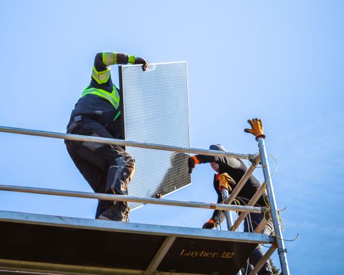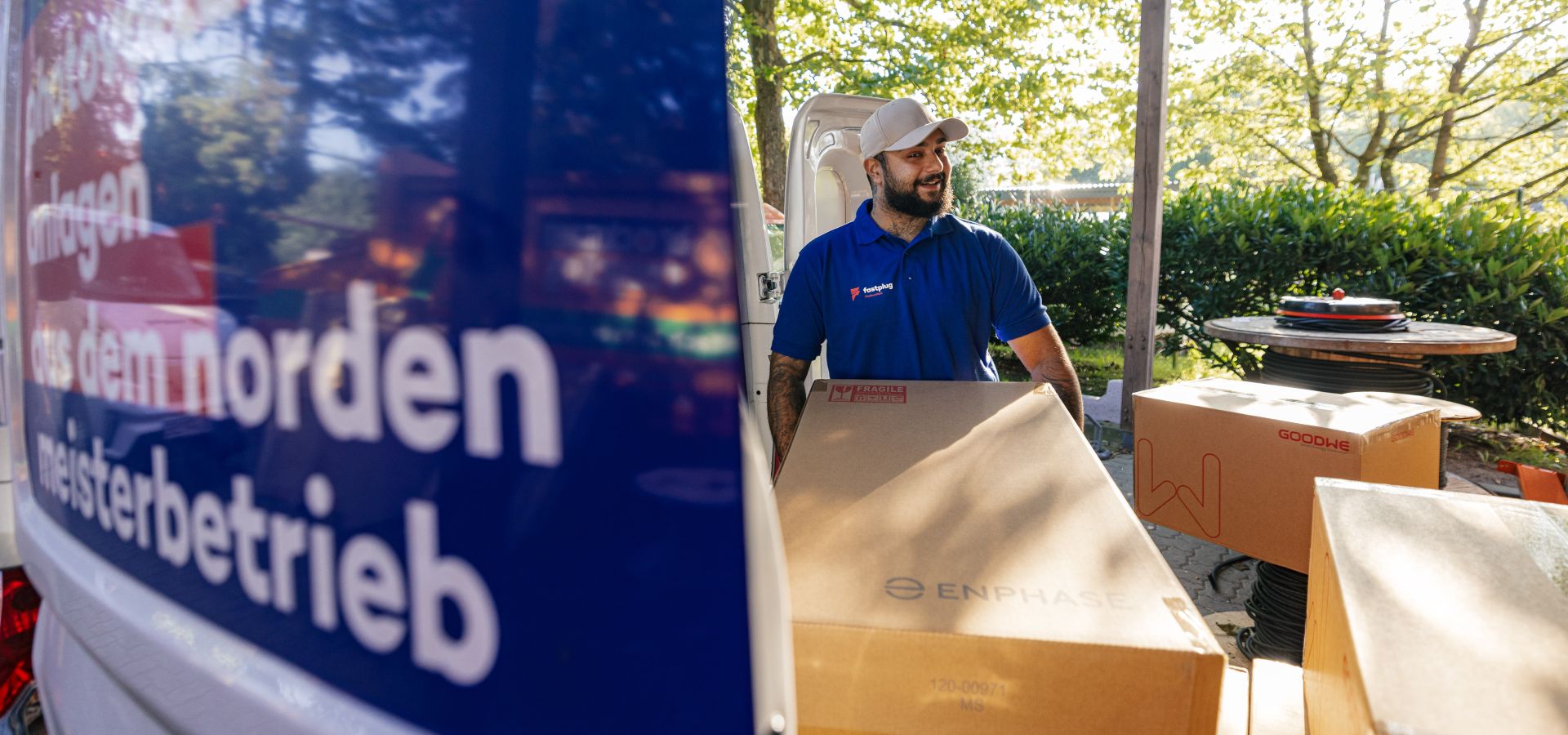 Unsere kompetenten Fachkräfte legen sich für Dich und Deine Solaranlage ins Zeug, beantworten Fragen und sorgen für die zuverlässige und sichere Installation aller Komponenten. Von der Materialplanung und Bestellung über die Montage, Netzanmeldung bis zur Inbetriebnahme - Wir nehmen Dir alles ab und halten Dich stets informiert!